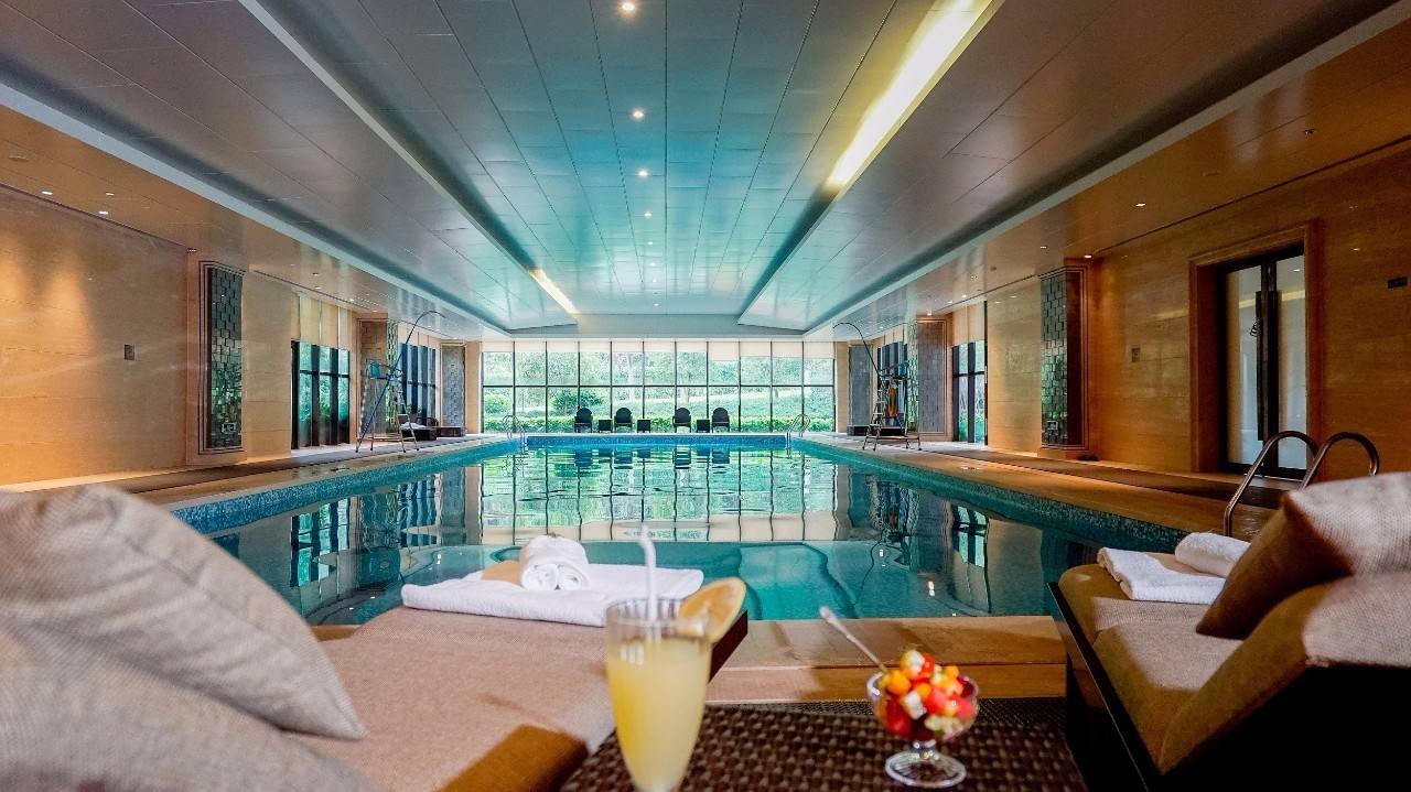 3、泳池沿外壁一周管道繁多,裝修后一般處在下層天花板內(nèi),設(shè)計時應(yīng)考慮在天花板內(nèi)留檢修通道和一定空間高度。