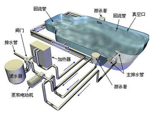 游泳池水處理設(shè)備的基本工作原理是持續(xù)不斷地循環(huán)抽水:從泳池抽到過濾和化學(xué)處理系統(tǒng),然后再送回泳池。這樣,抽吸系統(tǒng)可以使泳池中的水較為干凈,基本無污泥、垃圾和細菌。一些泳池還有加熱器,可以使水溫保持恒定。