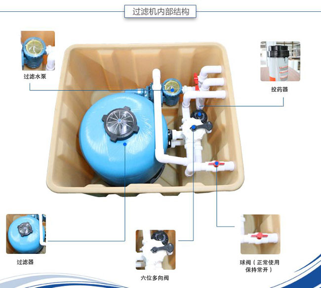 機箱外殼精選一級聚氯乙烯原料,一次注塑成型,外形小巧,工藝優(yōu)良,人性化設(shè)計,集過濾、扶梯、水下燈光于一身,并可配置11kw恒溫加熱器,特別適合于別墅泳池,一年四季均可享受游泳的樂趣。